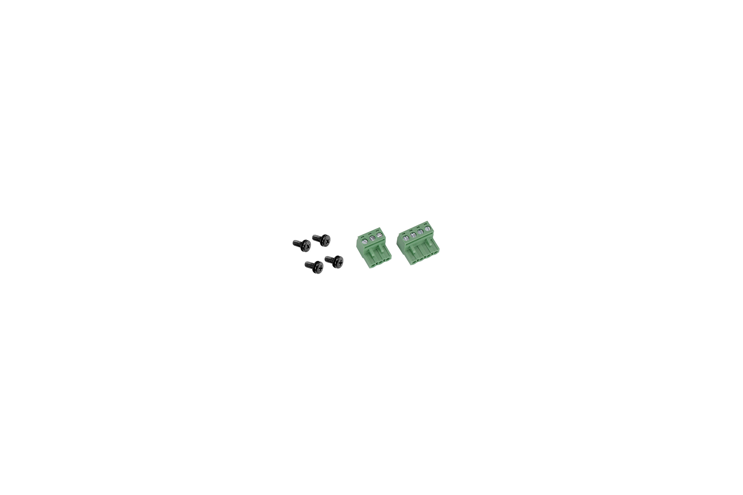 Блок 1 шт., комплект крепежа для установки блока в аппаратный шкаф, комплект 3-контактных клеммников, комплект 4-контактных клеммников, руководство пользователя