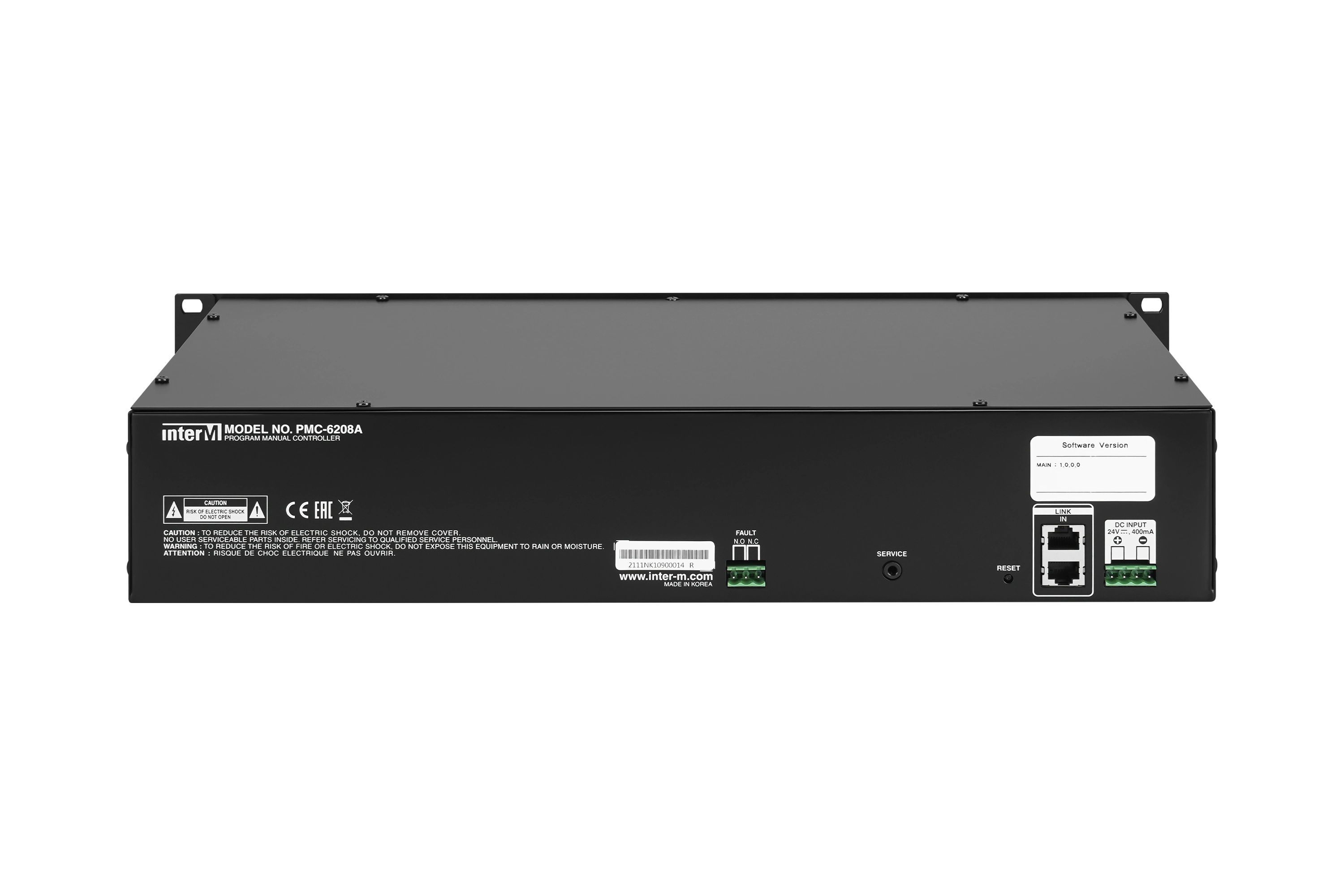 Питание PMC-6208A осуществляется от блока контроля и распределения питания Inter-M PD-6359. Конструкция устройства предусматривает установку в стандартный 19''-й аппаратный шкаф.