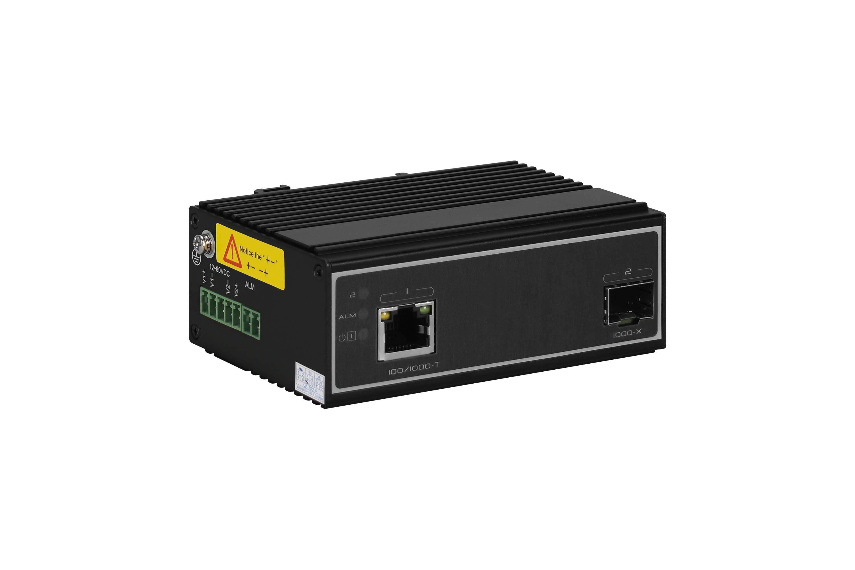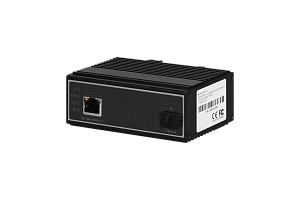 2-портовый промышленный гигабитный медиаконвертер обеспечивает стыковку кабельных сетей передачи данных на основе витой пары и оптоволоконных линий связи, конвертирует цифровой сигнал стандарта Ethernet 10/100/1000Base‑TX в сигналы стандарта Ethernet 1000Base‑X и обратно. В зависимости от типа оптического трансивера устанавливаемого в слот SFP дальность связи по оптоволокну может составлять десятки километров, медиаконвертер применяется для объединения удаленных локальных сетей или подключения удаленного сетевого устройства. Не требует настройки и работает по принципу «подключил — работает», что упрощает подключение без привлечения ИТ‑специалистов.