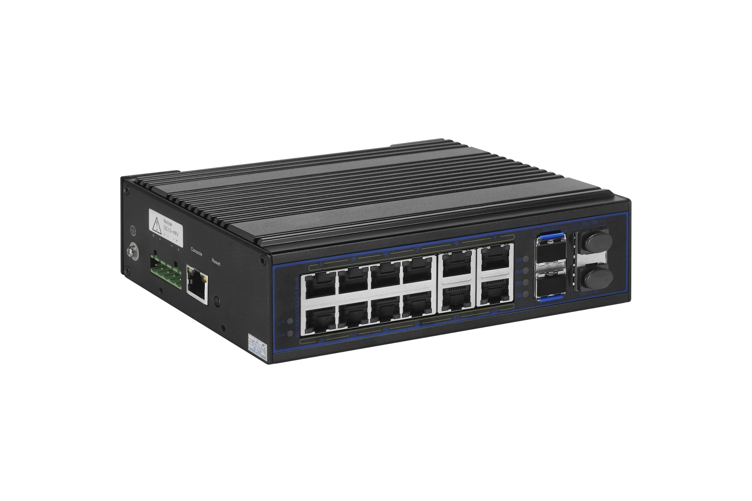 16-портовый гигабитный управляемый L3 коммутатор с PoE для промышленного применения. Оборудование предназначено для эксплуатации в экстремальных температурных условиях и отвечает жёстким требованиям устойчивости к импульсным помехам и электростатическому разряду. Коммутатор обеспечивает резервированное питание от двух независимых источников и поддерживает технологию Power over Ethernet (PoE) для передачи данных и питания по одному кабелю к конечным устройствам.