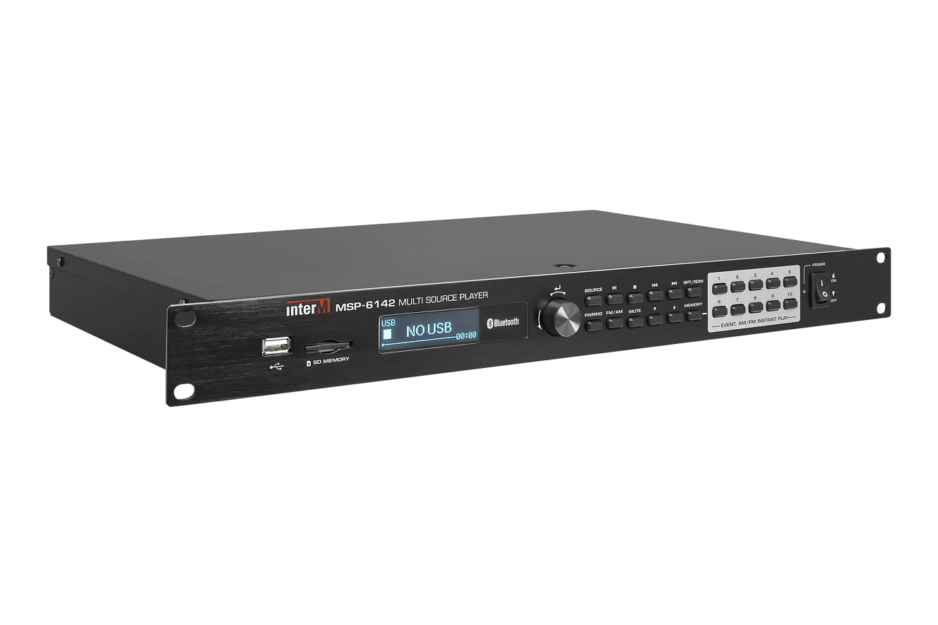 На смену уже заслуженным и громоздким блокам CD-6208, CD-610, CD-610U и тюнеру TU-6200 компания Inter-M презентовала изящный и компактный мультипроигрыватель MSP-6142, заменивший, по сути, весь перечисленный спектр устройств. В дополнение к существующим и уже привычным типам источников впервые в серийных моделях добавлена возможность приема аудиосигналов по беспроводному каналу Bluetooth, что бесспорно порадует пользователей.