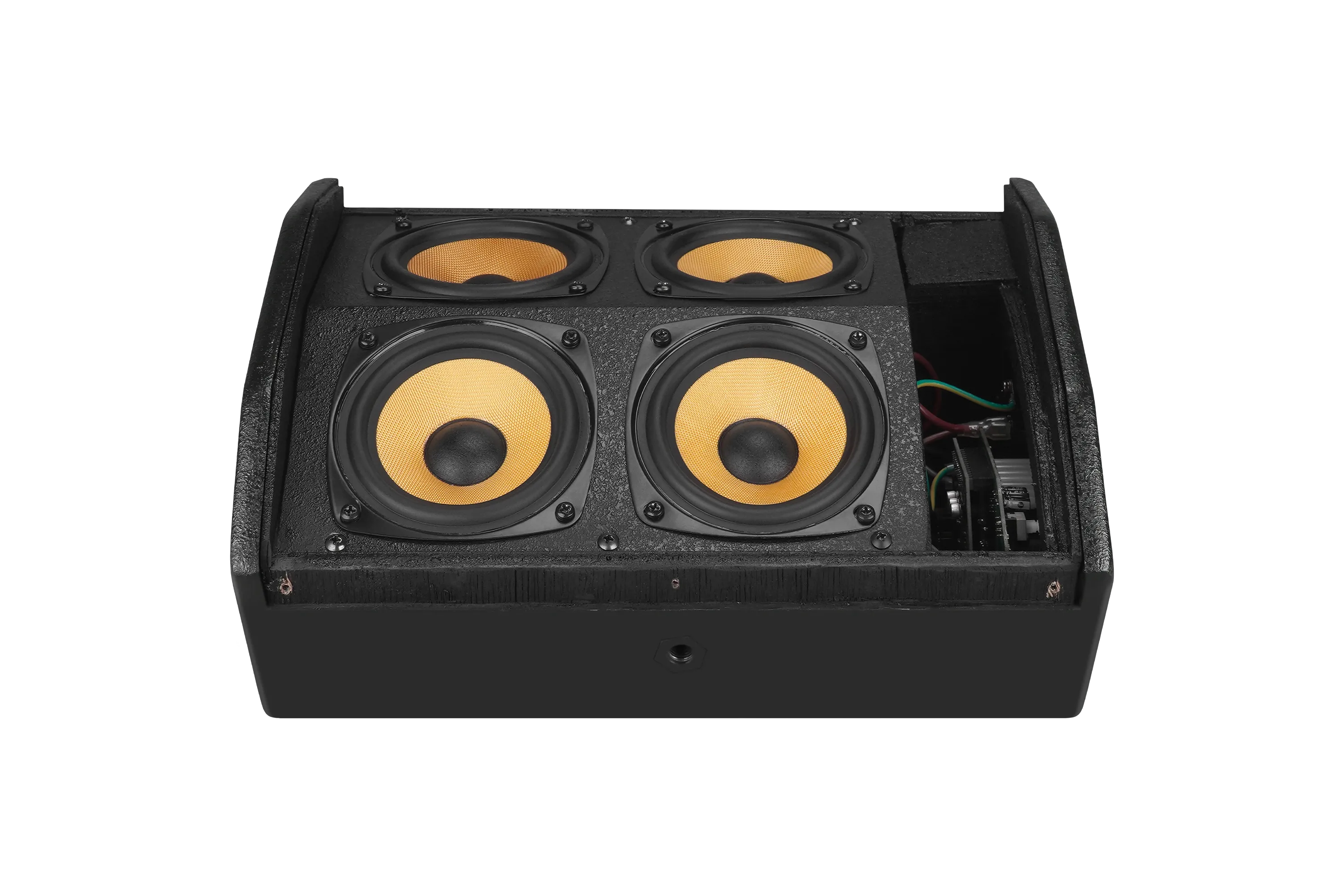 Мониторы, располагаясь в непосредственной близости от исполнителей, не требуют огромной мощности. Они направлены динамиками к обратной стороне микрофона, и использование направленных микрофонов плюс приближение микрофона к исполнителю снижает вероятность самовозбуждения системы.